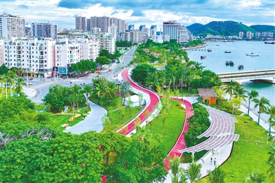 三亚凤凰岛桥头公园,新修的漫步绿道成为市民运动休闲打卡网红地。