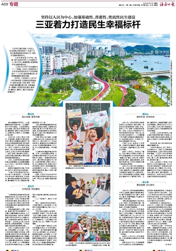 近年来,三亚坚持以人民为中心的发展思想,在海南自贸港建设中,坚持走创新、协调、绿色、开放、共享的高质量发展之路,加强基础性、普惠性、兜底性民生建设,解民忧、惠民生、暖民心,着力打造民生幸福标杆。