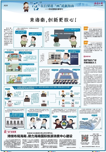 如此种种,无不彰显海南对知识产权保护的重视、对厚植创新沃土的用心。法律为约束,服务有温度,对侵权行为不手软,推动形成全社会共同保护知识产权的良好氛围,必能让创新主体在海南更有安全感、更添信心动力,也必能激发海南创新发展的澎湃动力。