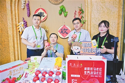 中国银行定点帮扶村集体电商团队在消博会现场直播带货。