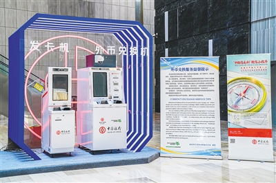 中国银行在消博会现场布设的数字人民币自助发卡机和外币兑换机。