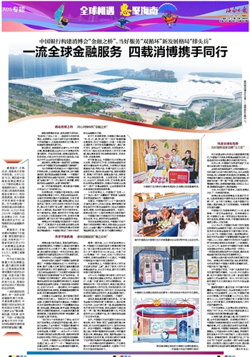 充分发挥境外机构遍及64个国家和地区的特色优势,从招商招展、跨境交易,到开展配套活动、做好现场金融服务保障……中国银行量身定制的综合金融产品体系,为消博会构建起“金融之桥”,又一次以高水平、高质量、高规格的综合金融服务,全程“保驾护航”。