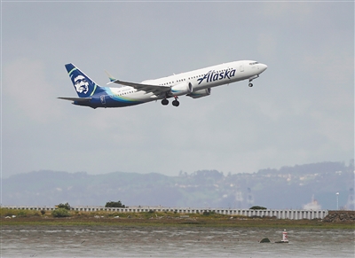 图为在美国旧金山国际机场拍摄的阿拉斯加航空公司飞机。新华社发