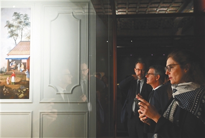 1700年,在一次凡尔赛宫大厅举行的盛大典礼上,路易十四身穿一套精美的中国服装并乘坐一顶八抬大轿出场,一时引得全场轰动。在本次展览现场,路易十五王后玛丽·莱什琴斯卡的“中国人厅”得以复原。在这间奢华的房间内,各种中国风格的珍稀瓷器和大理石花纹漆家具琳琅满目,堪称凡尔赛宫内中式风格的最典型代表。在法国皇族的影响下,许多贵族的庄园、城堡里也都建有“中国屋”,大家竞相追捧和模仿来自中国的舶来品。