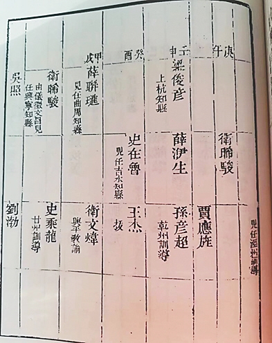 清代乾隆《韩城县志》科举表中,有卫晞骏考取功名的信息。 阿紫 供图