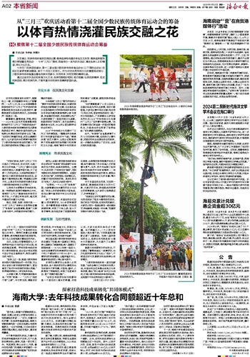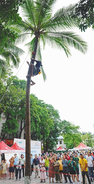 2024年海南黎族苗族传统节日“三月三”主会场活动中,攀椰竞速项目现场热闹非凡。本版图片均由本报记者 王程龙 摄