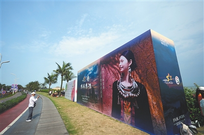 消博会时装周“遇见·昌江”闭幕大秀现场的广告牌。 本版图片均由 本报记者 陈元才 摄