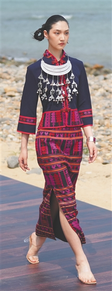 潮起潮落,波光粼粼,海天一色。在一望无际的蓝色里,黎锦像五彩的云飘过,伴随着海风与海浪声,留下悠远绵长的余韵。这是一场布满了昌江元素的时尚秀,别开生面,引人注目。