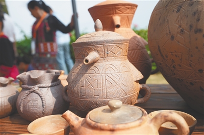 沙滩边,黎锦大放异彩;展馆内,黎陶也同样吸引眼球。