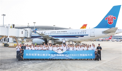 海口美兰国际机场举办荣获SKYTRAX三项国际大奖接机仪式。图片均由海口美兰国际机场供图