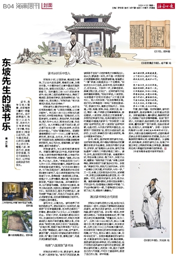 苏轼读书从喜好快乐中悟入,他平生没有其他嗜好,唯 “以图史为园囿,以文章为鼓吹”。宋元祐八年(1093)苏轼任礼部尚书时,对宋哲宗赵煦说:“臣等幼时,父兄驱率读书,初甚苦之,渐知好学,则自知趣向,既久则中心乐之,既有乐好之意,则自进不已。古人所谓知之者不如好之者,好之者不如乐之者……然必欲进学,亦须自好乐中悟入。”“好乐”即喜好快乐。即便贬谪海南期间(1097—1100),过着“食无肉,病无药,居无室,出无友,冬无炭,夏无寒泉”的艰苦生活,能得到朋友郑嘉会随船寄来的图书,他以书为友,倍感欣慰,说“诸史满前,甚可与语者也”。