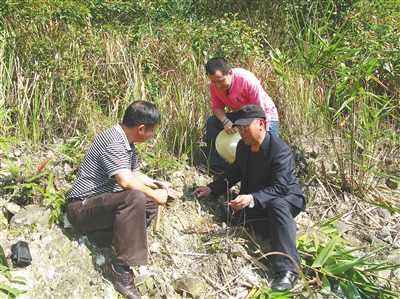 本文作者(左)在琼北地区调查雷公墨。 本版图片均由何贤伟提供