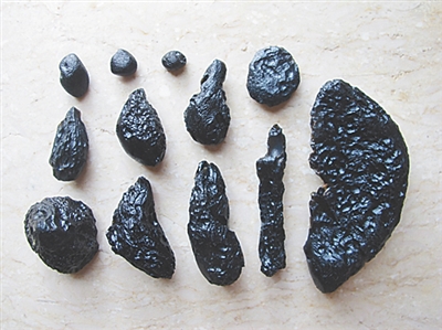 每当暴雨过后,走进海南的山坡、园地,在地表往往容易发现一种指头大小、颜色漆黑的小石头,因其呈饼形、圆粒形、液滴状、棒状、哑铃状、不规则块状等多样的独特形态,在琼北、琼东地区,当地操闽南语系方言的百姓大都形象地称之为雷公石、雷公屎——天上雷公所撒石块、粪便,不少人将其作为宝石加工雕琢成装饰品佩戴,或直接作为观赏石摆设利用。