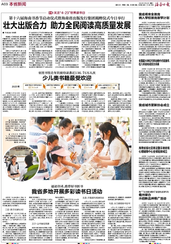 本报海口4月22日讯 (记者刘晓惠 通讯员郑晓菲)过去一年海南人爱读哪些书?在第29个世界读书日来临之际,海南日报记者从省图书馆获悉,2023年,省图书馆共计接待读者近136.74万人次,文献借阅排行榜前三名分别是《半小时漫画〈论语〉》《布莱顿少年冒险团8:最后的冒险》《布莱顿少年冒险团7:王子与马戏团》。