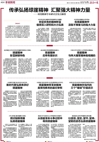 当前,省委将“琼崖精神的基本内涵与时代价值”列为省重大项目进行研究,足见重视程度之高。接下来,我们还将广泛学习、宣传和弘扬琼崖精神,为海南自贸港建设贡献力量。