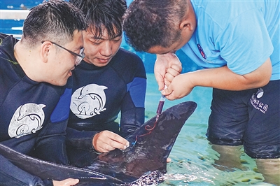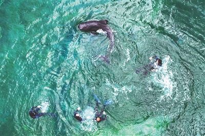 ③“海棠”体检后,在医疗池中“撒欢”。