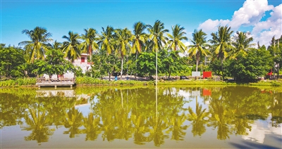 儋州稳步推动“六水共治”,保护修复乡村湖塘,改善区域水生态环境和村庄人居环境。本报记者 陈元才 摄