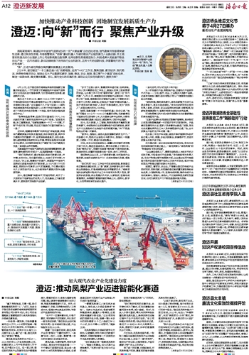 进园区、看项目、访企业,不难看出澄迈的传统产业因时而变、因势而新,共同推动澄迈高质量发展取得标志性成果,从智能制造入手,改造传统流程,推动传统产业走向高端化、智能化、绿色化,不仅能获得更多新的发展空间,也可为新质生产力不断成型提供强大动能。