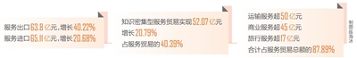 看结构,知识密集型服务贸易稳定增长。一季度传统服务贸易71.46亿元,增长45.95%,占服务贸易的55.43%;新兴服务贸易57.45亿元,增长13.78%,占服务贸易的44.57%,其中知识密集型服务贸易52.07亿元,增长20.79%,占服务贸易的40.39%。