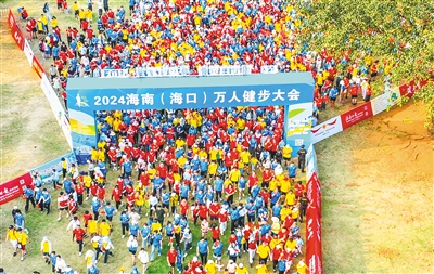 本报海口4月27日讯(记者张期望)4月27日上午,一年一度的海南万人健步大会在海口成功举办。近万名市民游客迎着朝阳出发,在海风吹拂下行过滨海漫步道,完成了对海口网红地标的又一次打卡。作为省内参与度、关注度最高的群众体育活动品牌之一,海南(海口)万人健步大会已成功举办5届。今年,大会以“阔步自贸港,不负好春光”为主题,线路途经白沙门公园、天空之山驿站、东坡老码头等海口网红打卡地,全长8.8公里,70%以上为滨海漫步道,让市民游客们在享受运动的同时感受海口城市之美。
