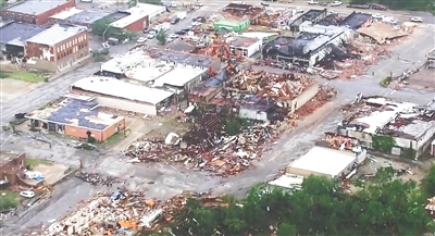 图为4月28日在美国俄克拉何马州萨尔弗市拍摄的遭龙卷风破坏的景象。新华社/美联