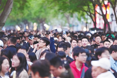 5月1日,哈尔滨中央大街上人头攒动。