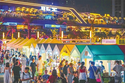 五月四日晚,海口湾沿线,市民游客在市集上购物。本报记者 王程龙 摄