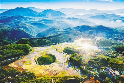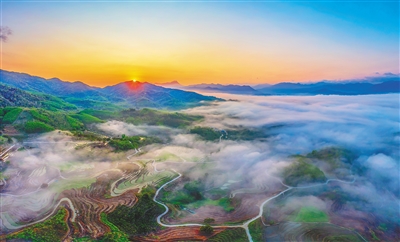 晨光中的五指山牙胡梯田。 孟志军 摄