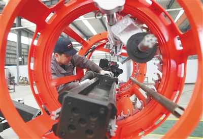 工人在河北省昌黎县一家工程机械设备企业的生产车间工作。 新华社发