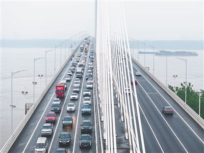 5月5日拍摄的南京江心洲长江大桥上的车流。今年“五一”假期,全国主干公路交通流量持续保持高位运行,从交管局监测的75条主干高速公路700个重要通道监测节点来看,通行流量较去年假期上升4.19%。(本栏照片均由新华社发)