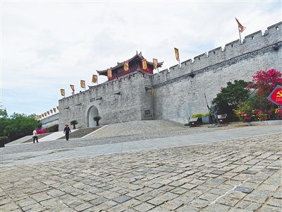这座高大而坚固的古城墙就静静矗立在环岛旅游公路旁,要了解崖州古城历史和文化,需下车慢行。崖州古城出入有“三通,”然而现在只能看到“文明门”,岁月的冲刷让城墙颜色深浅不一,却为其增添了几分底蕴。