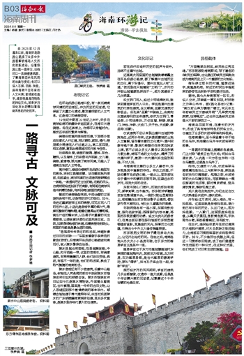 ■ 海南日报记者 李梦楠自2023年12月通车以来,海南环岛旅游公路成了众多中外游客解锁海岛人文历史的新途径。沿着旅游公路一路寻古,沿线可以一览骑楼建筑群,了解海南百余年风雨的沧桑与变迁;也可以深入古城、书院、学宫,探寻海南千百年来的人文兴衰;抑或前往庙宇,感受独具海洋特色的民俗文化,聆听岁月深处发出的镌刻着海南声息的历史回声。