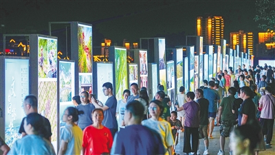 5月4日,海口市民在云洞图书馆外的观海步道欣赏海南环岛旅游公路和美乡村图片展。本次展览由省农业农村厅主办,主题为“锦绣乡村入画来”,将持续至5月10日。