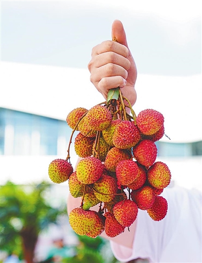 作为我国荔枝原产地之一,陵水拥有丰富的荔枝种质资源。近年来,陵水种植企业积极与科研院所合作,不断加强早熟、特早熟新品种荔枝的选育及推广。“公司已经取得了具有知识产权的‘仙桃荔植物品种’在海南区域的独家使用权,目前已经在海南授权嫁接2800亩。”海南景鹏农业有限公司董事长钟能钧介绍,“仙桃荔”单颗可重达60克,不仅口感佳、果肉饱满,且早熟性好,这一新品系将填补早中熟特大果荔枝品种的市场空白。