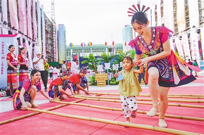 活动现场的竹竿舞表演。本组图片均由本报记者 王程龙 摄