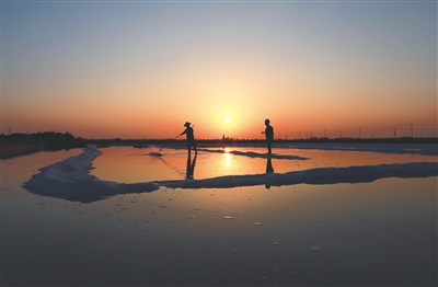 莺歌海盐田的夕阳美景。海南日报记者 张杰 摄