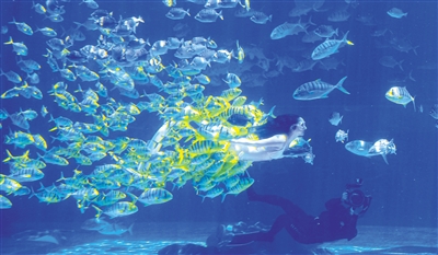 近日,在三亚海昌梦幻海洋不夜城,游客体验潜水旅拍。