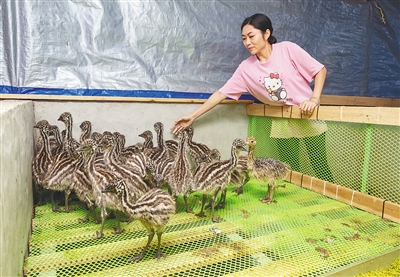 本报定城5月14日电 (记者李豌)5月14日,定安县雷鸣镇山地村鸸鹋(ér miáo)种苗基地中,工作人员正在用新鲜的青草饲料喂养一群已养1个月的鸸鹋苗。“这些小苗一只能卖六七百元,三个月的能卖超过一千元,成熟的种鸟则平均售价达3500元,连一只蛋也能卖出上百元的价格。”省卫健委派驻山地村干部、该村乡村振兴工作队队长罗运海说,这是近年来,村委会干部和乡村振兴工作队经过多方考察后,从广东引进的新产业。