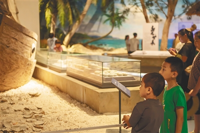 图为日前小游客在中国(海南)南海博物馆参观。
