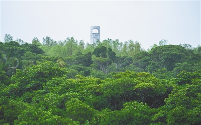 5月17日,月之塔成为观赏海南东寨港国家级自然保护区红树林风光的好去处。本报记者 李天平 摄