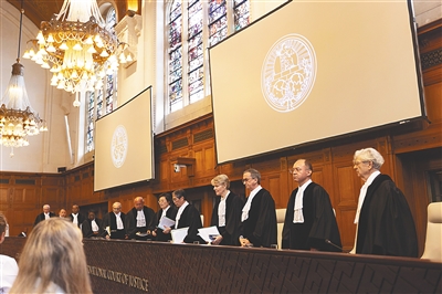 在荷兰海牙,国际法院法官参加听证会。新华社发