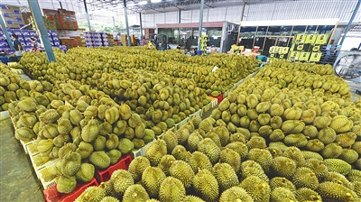 走进广西南宁海吉星水果批发市场,榴莲摊位前大多停着一两辆卡车,工人们忙着装卸榴莲,散客们见缝插针挑选榴莲。广西欧恒国际物流公司业务员李虔昌说:“我们都在忙着进榴莲,都是连夜发往国内市场,每天都是凌晨两三点才发完。”