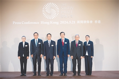 5月21日,嘉宾在2024年度邵逸夫奖新闻发布会后合影。新华社记者 朱炜 摄