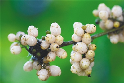 近日,在海南热带雨林国家公园五指山片区,杜茎山的果实挂满枝头。