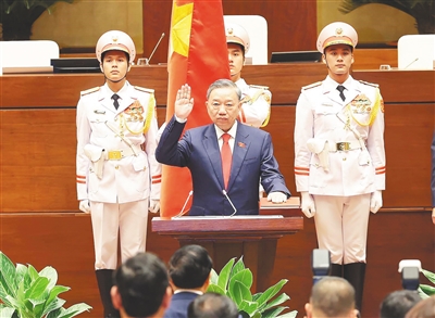 苏林,1957年7月生于越南北部兴安省,是越共第十二届、十三届中央政治局委员,长期在越南公安部任职,2016年4月起任公安部长。他曾多次访华。图为苏林在越南首都河内宣誓就任越南国家主席。新华社/越通社