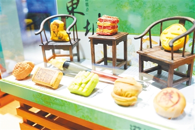 海口滋游记食品有限公司展示“东坡悦礼”东坡文化主题文创糕点。 本组图片均由本报记者 张茂 摄