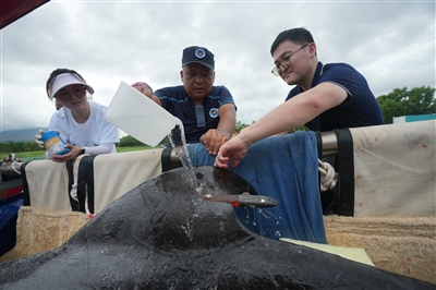 乜英奎用手遮挡着依然火辣辣的阳光说,短肢领航鲸是深海群居生物,希望“海棠”能够找到接纳它的族群,祝愿它一路平安。
