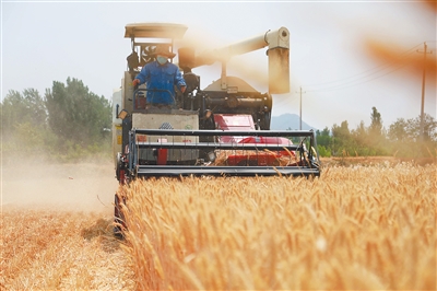 眼下,各小麦产区陆续进入小麦收获期,农民抓紧抢收小麦,确保颗粒归仓。