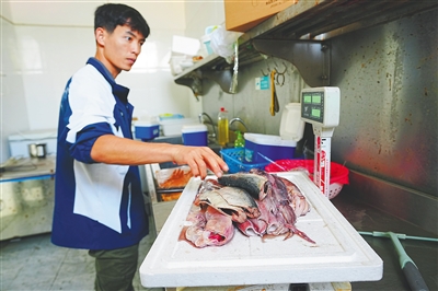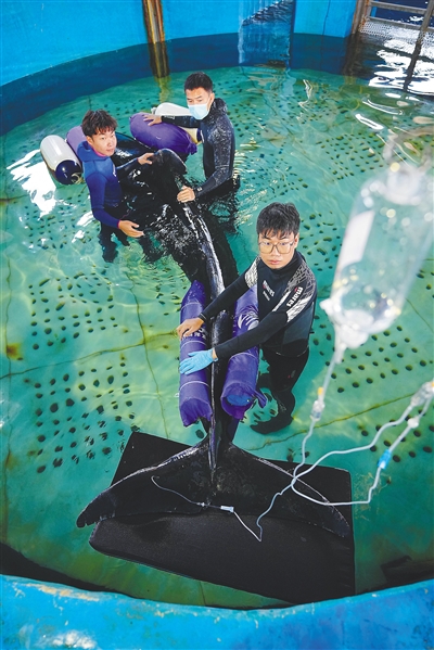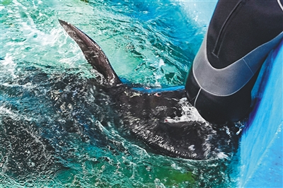 图5 4月24日中午,“海棠”做完体检后,在医疗池中“撒欢”。