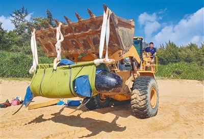 图2 1月3日,铲车将“海棠”吊起,准备运往三亚海昌生物保育中心。